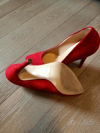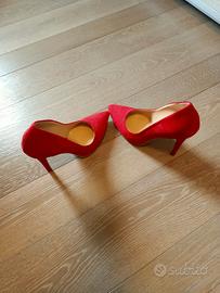 vendo per inutilizzo scarpe scamosciate rosse. Usate due volte, causa per me troppo alte tacco 12. No spedizione