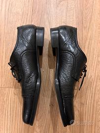 Scarpe eleganti da uomo Rossini, modello classico Derby con puntale rinforzato (cap-toe), realizzate in Italia in vera pelle esotica (come coccodrillo o simile) di alta qualità.