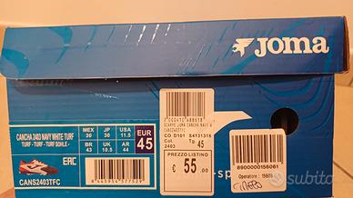 Scarpe da corsa con chiodi Joma Cancha 2403 navy white turf, leggere e flessibili ideali per velocisti.