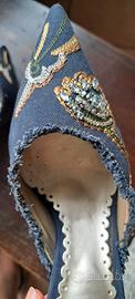 Scarpe sabot donna decoltè in stoffa colore jeans. Tacco 7 cm. Marca Obsel. Taglia 35. Usate una volta.