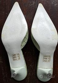Scarpe sabot donna decoltè in pelle colore verde chiaro. Tacco 7 cm. Marca Dolce Nera. Taglia 35. Usate pochissimo.