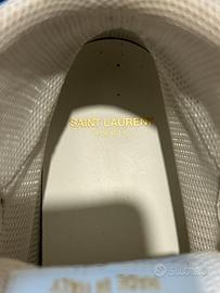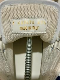 SL24" in pelle e tela bianca con dettagli in suede grigio, rosso e blu scuro tenuta in ottimo stato come si vede in foto. Numero 41,5 che corrisponde a 26,5 cm