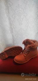 scarpe rosa modello Timberland con pelliccia rosa interna ed esterna mai usate