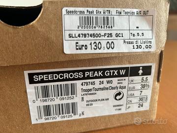 vendo Salomon donna Speedcross Gtx indossate una volta. 75 euro, caratteristiche nella foto con etichetta. Scatola originale.