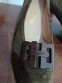 Décolleté Verde bosco salvatore ferragamo con fibbia in legno