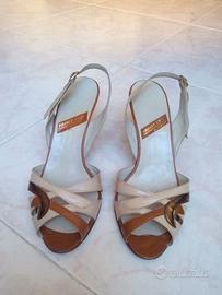 Sandali beige/marrone N. 36 tacco cm. 7 - suola in vero cuoio articolo Made in Italy Vendita a mano su Napoli