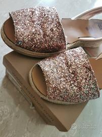 Scarpe sandali SKA Avarca Creta Maiorchina salmone glitterate con suola in cuoio ecologico. Taglia 39. Made in Spain. Vendo nella scatola originale.
