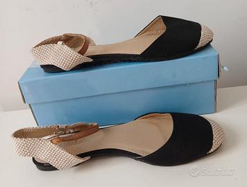 Scarpe estive marca Alda&Alda, tessuto, colore nero e beige, taglia 40, casual. Nuove, mai indossate. Leggermente danneggiata l'attaccatura del cinturino.