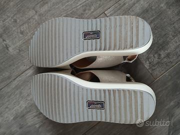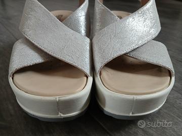 Sandalo color argento, con plateau 5 cm vendo . indossate solo due volte, praticamente nuove. con cinturino posteriore . taglia 38