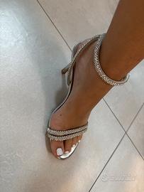 Scarpe Sandalo gioiello primadonna brillantissime, legate alla caviglia. Indossate solo per un’occasione. Molto eleganti e comode.