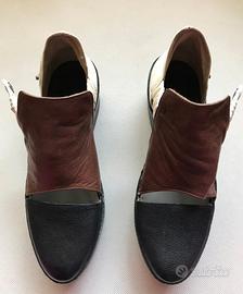 Scarpe sandalo IXOS in pelle tricolore (nero bianco e caramello) nuove di zecca, con dust bag originale, stupende.
