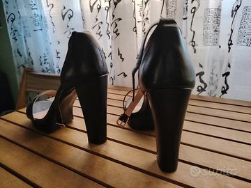 Scarpe messe solo per prova, mai in esterno, tacco 12 cm totale e plateau 3 cm (dislivello 9 cm) pianta comoda, tomaia confortevole. Similpelle ( materiale plastico)