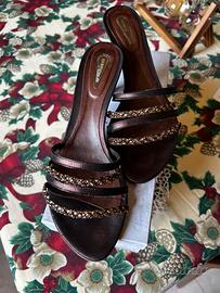 Sandali Vic Matie color bronzo con 4 fibbie di cui 2 in pelle e 2 sormontate da pietre swarovsky certificate Misura 38 tacco 40 Usate poco , Ottimo affare