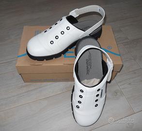 Vendo ciabatta/scarpa antinfortunistica a norma CE, DPI (dispositivo di protezione individuale) della ditta "ABEBA" modello unisex n° 41, con cinturino regolabile.