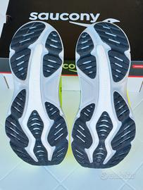 Scarpe da corsa Saucony Hurricane 25 da uomo taglia 42. - Acquistate a fine febbraio 2026. - Provate una sola volta in casa, le vendo perché ho sbagliato taglia. - Ideali per piedi lunghi 25,5 / 26 cm (lunghezza scarpa 26,5 cm). - Modello top di gamma per ammortizzazione e stabilità (tecnologia PWRRUN PB).
