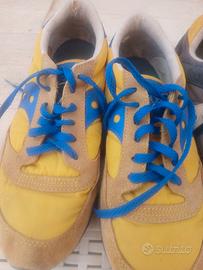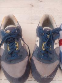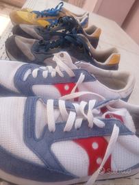 scarpe saucony uomo, numero 42,5, in buono stato, la bianca usata pochissimo. la bianca è la gialla modello Jazz, la blu modello Shadow 6000.