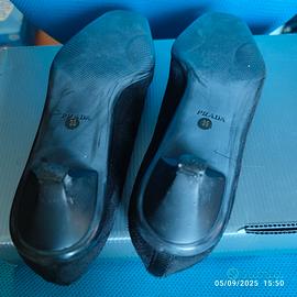 Vendo scarpe scamosciate colore nero di "PRADA" n. 35. Usate poche volte ma in ottime condizioni e con tacchetti di ricambio nuovi. Vedere foto allegate.