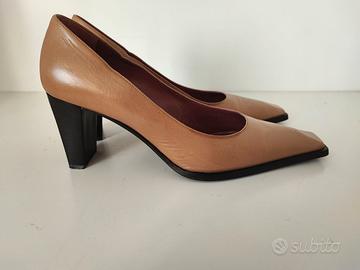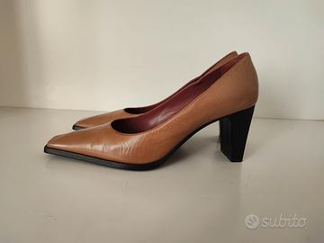 Scarpe donna decolletè in pelle Sergio Rossi, punta quadra, made in Iraly, in ottime condizioni, numero 40, tacco cm 8