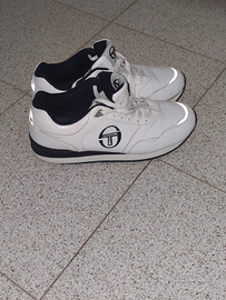 Vendo scarpe "Sergio Tacchini" bianche, invernali, leggermente consumate al lato destro della scarpa destra, e lato sinistro della scarpa sinistra.