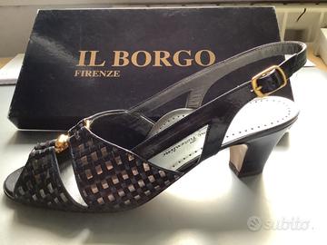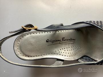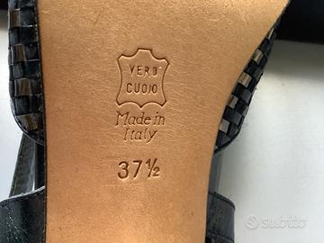 Bellissime scarpe da signora tutte in pelle , lavorazione artigianale , col. Blu con metalleria dorata, tacco 5cm. Mis . 38, un 37,5 calzata comoda.