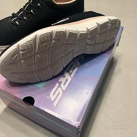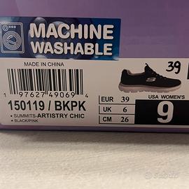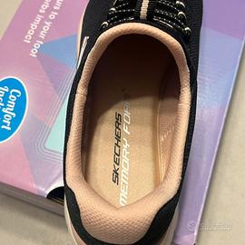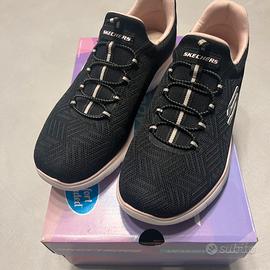 Skechers Summits - Artistry Chic (Nuove) Prezzo: 50€ Taglia: 39 EUR (9 USA Women's / 26 cm) Colore: Black/Pink (Nero con dettagli rosa pesca) Descrizione: Vendo bellissime scarpe Skechers originali, modello Summits - Artistry Chic, completamente nuove e mai indossate, complete di scatola originale. Queste sneaker sono famose per il loro comfort eccezionale grazie alla soletta in Memory Foam che si adatta alla forma del piede, rendendole perfette per camminate lunghe, lavoro o tempo libero. Caratteristiche principali: • Massima comodità: Soletta ammortizzata Memory Foam. • Praticità: Design sportivo con lacci elastici (senza bisogno di allacciarle). • Igieniche: Modello lavabile in lavatrice (Machine Washable). • Leggerezza: Suola flessibile e tomaia in mesh traspirante. Condizioni: 10/10 – Nuove da negozio.