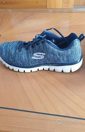 Svendo scarpe skechers originali con la sua scatola in ottimo stato comodissime. Taglia 39 ma calzano abbastanza strette va bene per chi ha un 38 o 38 e mezzo. Tinta color jeans.