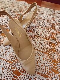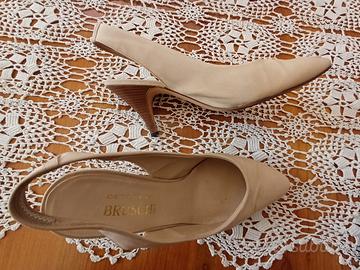 Scarpe décolleté slingback in seta color champagne, marca Bruschi/De Toni. Tacco 7,5 e taglia e 37,5. Tenute benissimo, vendo per cambio taglia.
