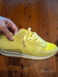 Sneacker Philippe Model in pelle scamosciata color giallo- lime. Usate pochissimo non hanno alcun tipo di segno o taglio, sono praticamente nuove. Vendo per inutilizzo a causa di un problema ai piedi. N. 38. Calzano veramente bene e sono morbide