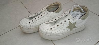vendo scarpe sneakers donna 2 Stars bianche con zeppa. usate, in condizioni discrete.