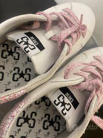Scarpe sneakers 2star bambina, in pelle bianca con glitter rosa e stelle laterali, taglia 34, mod.2SB2835, originali come nuove vedere foto.