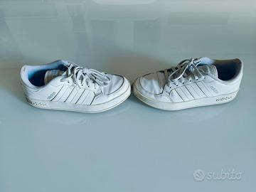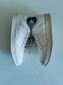 Offro scarpe Sneakers, marca Adidas, modello Breaknet n.38 (235 mm), colore bianco. Le scarpe sono state usate per due stagioni e presentano qualche segno di usura da utilizzo (vedi foto), ma ancora del tutto funzionali.