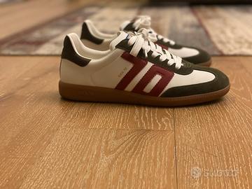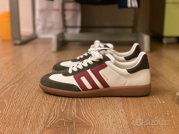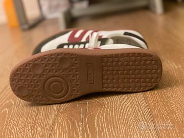 Scarpe Sneakers Uomo Donna - Stile Retrò e Comfort Garantito - €110 Scopri il perfetto connubio tra stile vintage e comfort moderno con queste sneakers uniche, ideali per chi cerca un look casual ma distintivo. Realizzate con materiali di alta qualità, queste scarpe combinano pelle bianca liscia con dettagli in suede verde scuro, creando un contrasto elegante e raffinato. Il design è arricchito da una grande "76" rossa sui lati, che dona un tocco sportivo e dinamico, perfetto per chi ama distinguersi con originalità. Caratteristiche principali: Materiali premium: Pelle bianca morbida e inserti in suede verde scuro per una resistenza e un comfort superiori. Design iconico: Numero "76" rosso su entrambi i lati, per un look vintage e sportivo che non passa inosservato. Suola in gomma: Suola marrone chiaro con ottima aderenza, ideale per camminare con sicurezza su qualsiasi superficie. Lacci bianchi: Lacci robusti e resistenti, facilmente regolabili per una calzata perfetta. Interno confortevole: Fodera interna morbida che garantisce comfort anche durante lunghe giornate. Versatilità: Perfette per abbinamenti casual, sportive o streetwear, adatte a ogni stagione. Queste sneakers sono in ottime condizioni, praticamente come nuove, e rappresentano un investimento di stile a un prezzo competitivo di soli €110. Non perdere l’occasione di aggiungere un paio di scarpe che uniscono estetica e funzionalità, perfette per chi ama un look autentico e senza tempo.