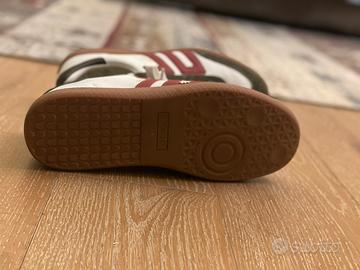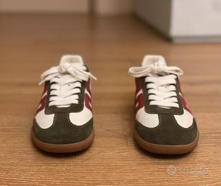 Scarpe Sneakers Uomo Donna - Stile Retrò e Comfort Garantito - €110 Scopri il perfetto connubio tra stile vintage e comfort moderno con queste sneakers uniche, ideali per chi cerca un look casual ma distintivo. Realizzate con materiali di alta qualità, queste scarpe combinano pelle bianca liscia con dettagli in suede verde scuro, creando un contrasto elegante e raffinato. Il design è arricchito da una grande "76" rossa sui lati, che dona un tocco sportivo e dinamico, perfetto per chi ama distinguersi con originalità. Caratteristiche principali: Materiali premium: Pelle bianca morbida e inserti in suede verde scuro per una resistenza e un comfort superiori. Design iconico: Numero "76" rosso su entrambi i lati, per un look vintage e sportivo che non passa inosservato. Suola in gomma: Suola marrone chiaro con ottima aderenza, ideale per camminare con sicurezza su qualsiasi superficie. Lacci bianchi: Lacci robusti e resistenti, facilmente regolabili per una calzata perfetta. Interno confortevole: Fodera interna morbida che garantisce comfort anche durante lunghe giornate. Versatilità: Perfette per abbinamenti casual, sportive o streetwear, adatte a ogni stagione. Queste sneakers sono in ottime condizioni, praticamente come nuove, e rappresentano un investimento di stile a un prezzo competitivo di soli €110. Non perdere l’occasione di aggiungere un paio di scarpe che uniscono estetica e funzionalità, perfette per chi ama un look autentico e senza tempo.
