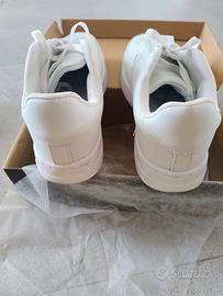 Scarpe Sneakers basse bianche da uomo, cavigliera imbottita, cuciture a vista, interno foderato in tessuto con soletta rimovibile, suola in gomma n.43.