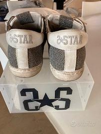 Sneackers bianche/grigie con perline, utilizzate pochissimo, tg. 37 ancora con la scatola originale marca 2 Stars originali