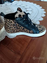 Sneakers marca Baldinini originale - stile animalier - color nero, marrone, beige - con laccetti e cerniere - N. 37
