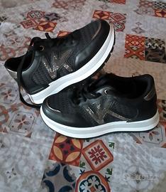 SCARPE SNEAKERS DONNA COLORE NERO CON GLITTER. CON SUOLA COLORE BIANCO STILE PLATFORM