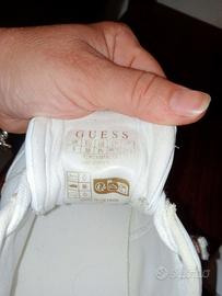 Vendo scarpe da ginnastica Guess, bianche, numero 39 EU. Sono in buone condizioni, anche se la suola presenta qualche segno di usura.