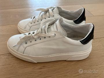 Vendo queste sneakers in pelle bianca, indossate davvero poche volte perché ho sbagliato numero. Sono in ottime condizioni, come si vede dalle foto. ✔️ Pelle morbida e di qualità✔️ Segni di utilizzo minimi✔️ Soletta interna seminuova (ho sempre usato plantari)✔️ Comode e versatili, perfette per ogni outfit Numero: 42 Ideali per chi cerca una scarpa bianca basic ma elegante, praticamente come nuova ✨