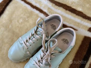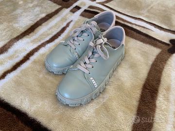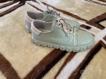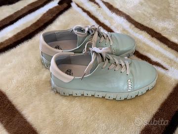 Vendo sneakers in pelle. Taglia 39, soletta interna 25 cm. Colore verde oliva. Le scarpe sono molto comode e leggere, con suola spessa. Condizioni: molto buone / quasi nuove. Si tratta di una vendita privata: nessun reso, nessun cambio e nessuna garanzia. Date un’occhiata anche ai miei altri annunci.