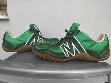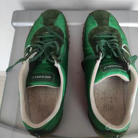 Cedo per inutilizzo scarpe marca Merrel N°44-45, tenute perfettamente: pulite, in tela verde prato e inserti in vero cuoio verde più scuro, come da foto. Esterni non graffiati e suole integre e pulite.