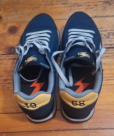 Scarpe Sneakers SUN 68 Niki Solid Uomo Taglia 42 Blu e Bianco gomma e tessuto