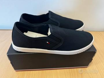 Le sneakers donna Tommy Hilfiger canvas blu sono state acquistate presso lo store ufficiale a via del corso (Roma) il giorno 15/02/2026 al prezzo di 70 euro. Sono NUOVE (mai state utilizzate e naturalmente prive di graffi o segni di usura).