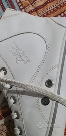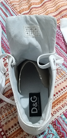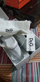 Stivaletti D&G bianchi in vitello nappato. Mai indossati in scatola originale con codice a barre e cartellino con ologramma di autenticità. Numero 42 colore bianco. Sono scarpe che si vendono sopra i 650 euro. No perditempo e collezionisti di foto. Se l'acquirente è di Roma posso incontrarlo altrimenti spedisco.