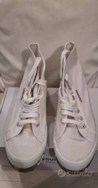 stivaletto sportivo donna Superga in tela bianca con gomma mimetica N37 usate una volta con scatola