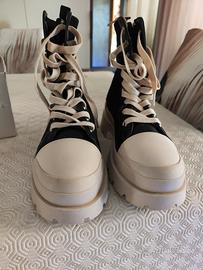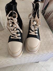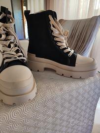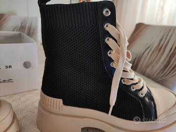 scarpe sportive donna in tessuto elasticizzato traspirante nero e carrarmato beige. nuove