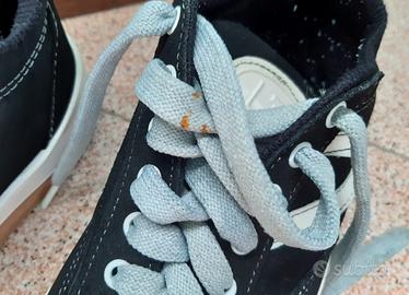 Scarpe sportive nere con gomma bianca, L.T.M.ade in Italy. Scarpa n. 38. Indossate pochissimo, in ottimo stato. Da segnalare due piccole macchie sui lacci grigi.