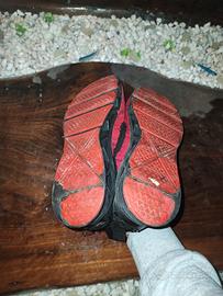 Vendo scarpe sportive da uomo, numero 45, colore nero e rosso. Usate, senza lacci e prive di solette interne (da sostituire), come visibile in foto.