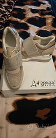 Scarpe sportive nuove. Mai indossate. Sono beige con brillantini. Comode da indossare senza lacci con una fascia stretch. Rialzate sul fondo. Queen Helena