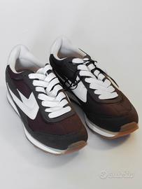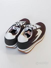 Bellissime scarpe da donna, sneakers stile vintage, marchio Bershka, colore marrone e biancho, suola in gomma color caramello, taglia 39. Le scarpe sono nuove, mai indossate, con cartellino.